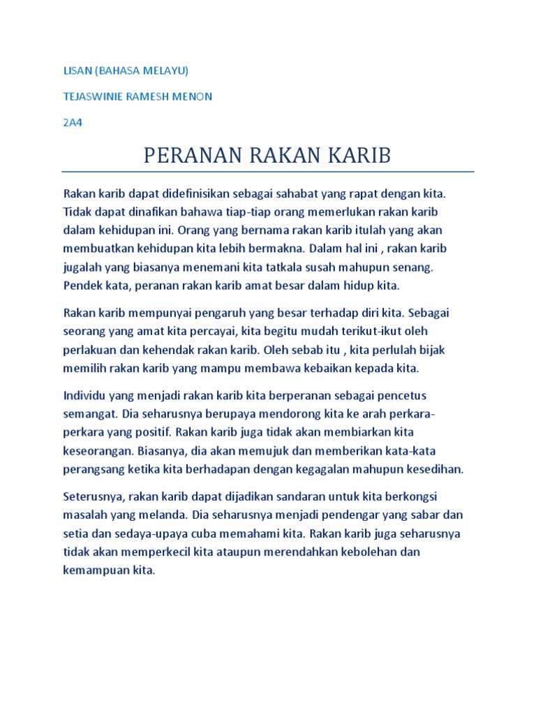 Karangan kepentingan rakan dalam hidup kita. Rakan sebaya adalah manusia yang penting dalam hidup kita selain dari anggota keluarga kita sendiri. Tegasnya sebagai rakan OKU saya akan memotivasikan mereka untuk meneruskan pelajaran di Sekolah Menengah Vokasional untuk murid berkerperluan khas. Berguna untuk mendidik pelajar n televisyen pendidikan iv.