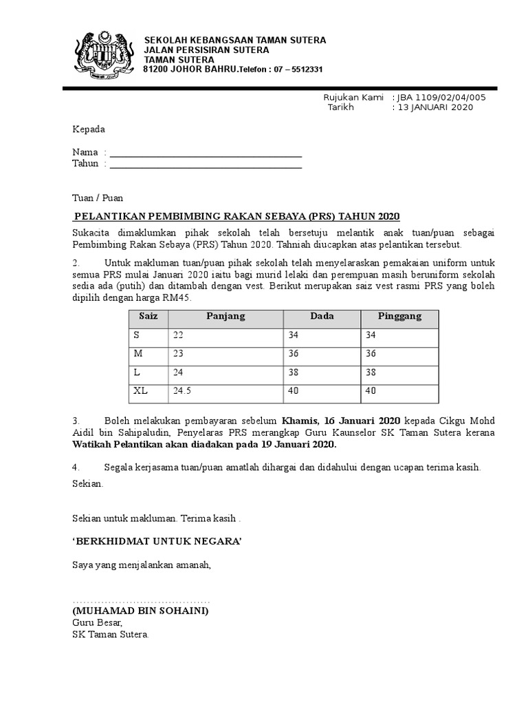 Surat Lantikan Dan Pembelian Vest Prs 2020 Pdf