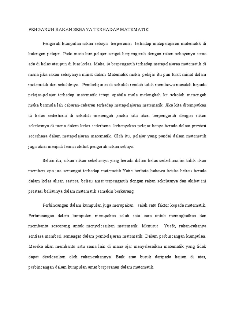 Pengaruh Rakan Sebaya Terhadap Matematik Pdf