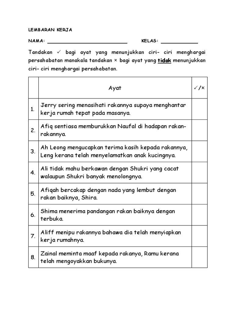 Lemabran kerja ciri-ciri rakan. Home Unlabelled Lembaran Kerja Ciri-Ciri Haiwan - Lembaran Kerja Pdf. Inilah ciri ciri rakan sebaya yang baik dan ulasan lain mengenai hal-hal yang masih ada kaitannya dengan ciri ciri rakan sebaya yang baik yang Anda cari. Ciri yang paling utama sudah pastinya sahabat yang sentiasa membantu kita ketika susah dan senang.