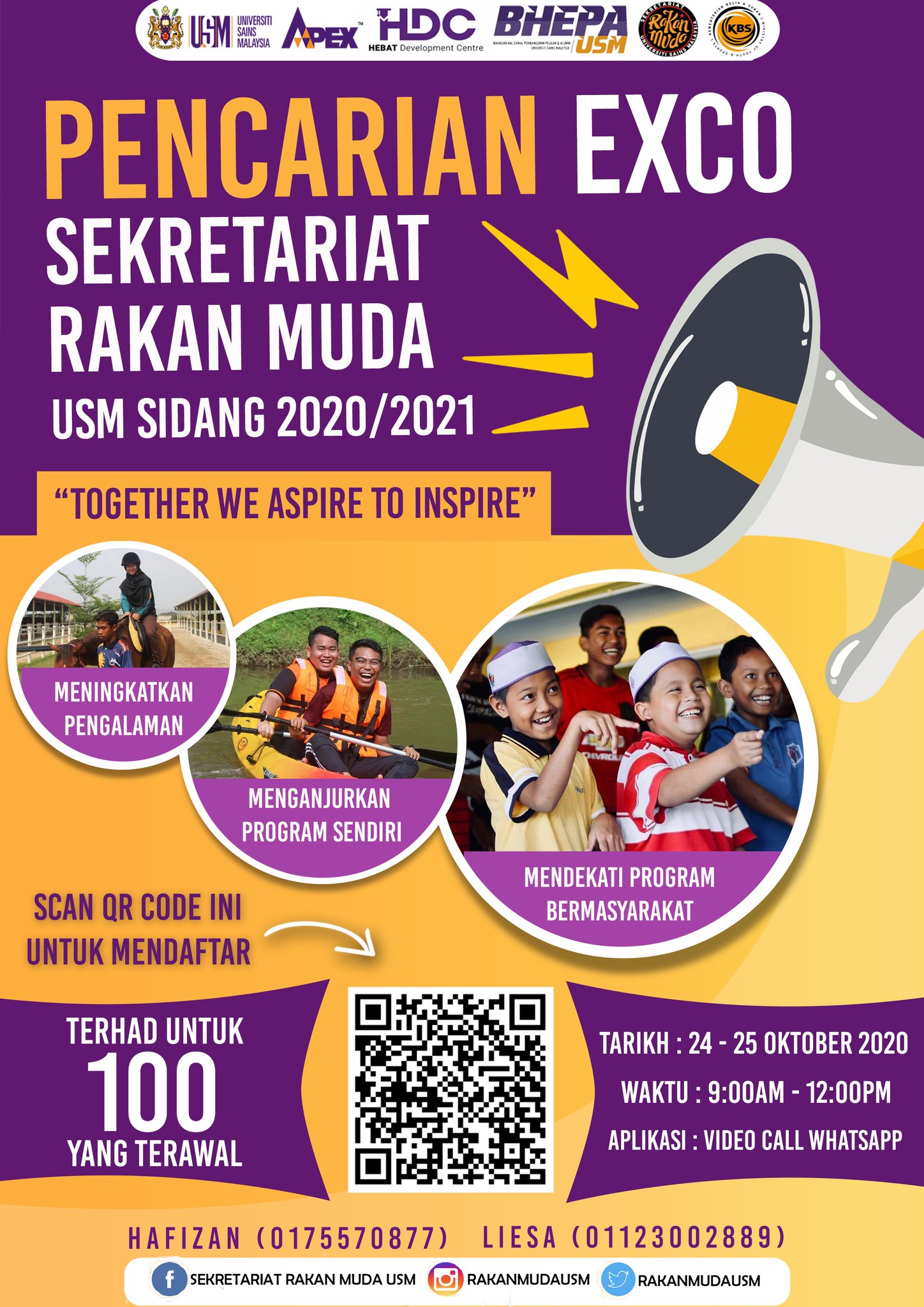 KHAMIS 800 pm - berkumpul di bustop main libry. SEKRETARIAT RAKAN MUDA USM 2021 KOMPILASI PROGRAM-PROGRAM SRMUSM SIDANG 2021 Assalamualaikum dan Salam Sejahtera Sepanjang Sidang 20202021 Sekretariat Rakan Muda USM telah berjaya melaksanakan sebanyak 18 program yang berteraskan Kemasyarakatan Kelestarian Modal Insan Keusahawanan Hubungan Luar Sukan. Team Rakan Muda mengucapkan Selamat Menyambut Aidilfitri Maaf Zahir Batin kepada seluruh masyarakat Malaysia terutama golongan belia remaja.