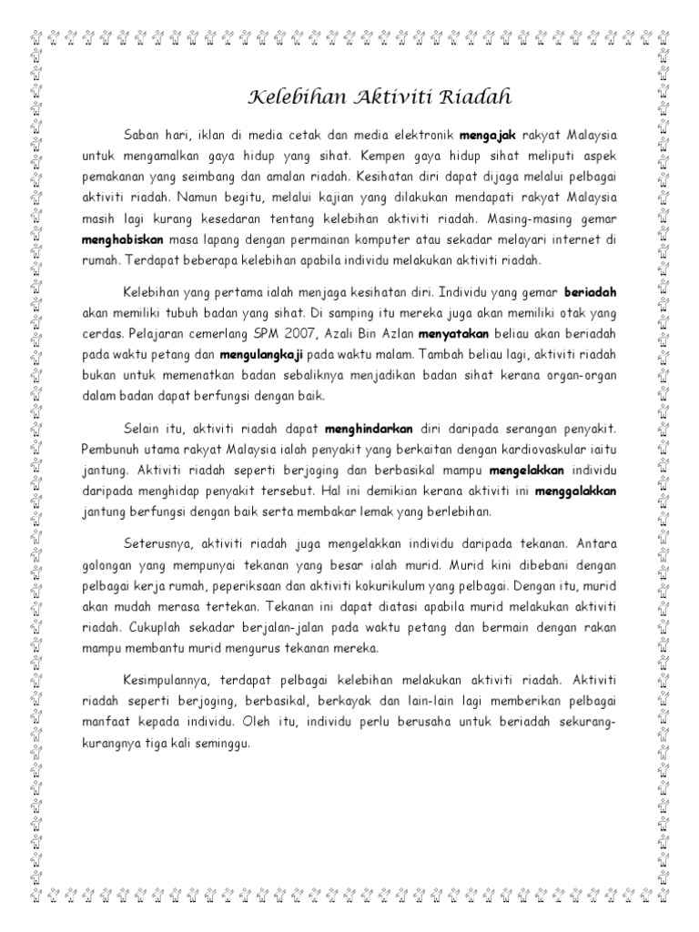 Karangan Kepentingan Aktiviti Riadah Sebagai Aktiviti Keluarga Englshgan