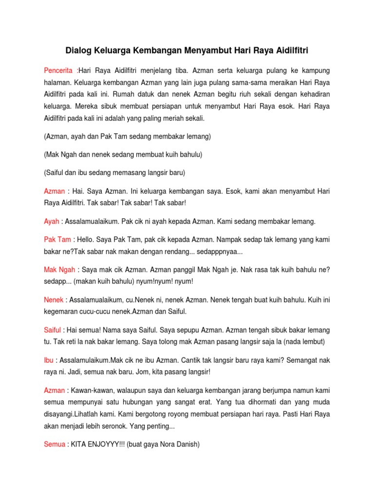 Dialog Keluarga Kembangan Menyambut Hari Raya Aidilfitri Pdf