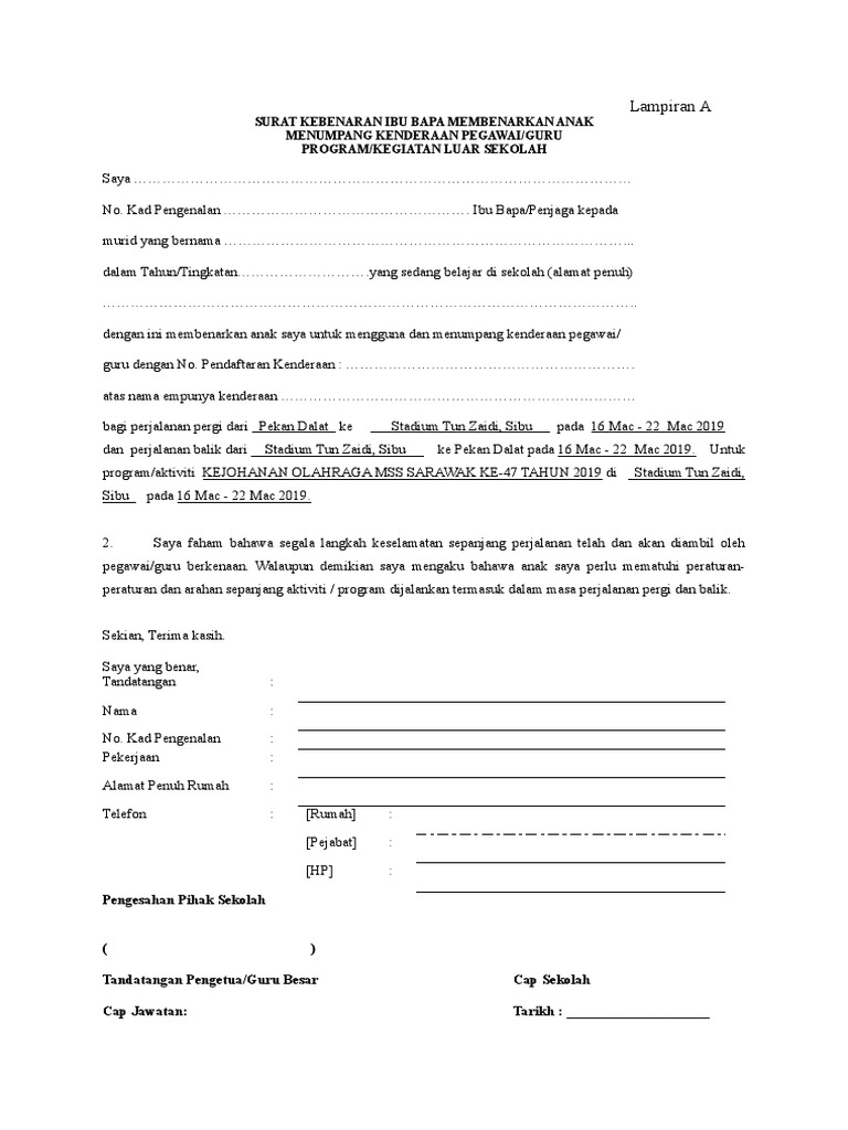 Berikut merupakan contoh surat kebenaran menggunakan kenderaan membawa murid atau pelajar menyertai aktiviti luar sekolah. Contoh surat perjanjian rakan kongsi perniagaan pdf to word contoh surat perjanjian rakan kongsi perniagaan pdf to excel contoh surat perj. Surat Kebenaran Menggunakan Kenderaan D49ow56dvo49.
